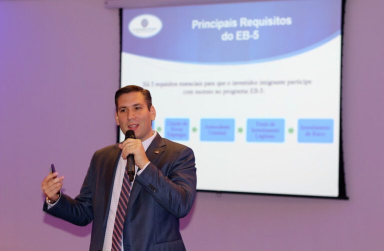 2 min readCarlos Colombo destacou-se como palestrante sobre o Visto EB-5 na Conferência de Investidores em São Paulo, Brasil October 12, 2017Written By: Colombo Hurd Em 7 de outubro de 2017, o Dr. Carlos Colombo, fundador da Colombo & Hurd, PL e advogado especializado em imigração dos EUA, participou da InvestUSA 360 Expo em São Paulo, Brasil. Todos os anos, a InvestUSA360 Expo reúne assessores de investimentos credenciados das maiores empresas de negócios dos EUA, palestrantes renomados, parceiros de negócios e representantes das principais construtoras do cenário atual. O Dr. Colombo, único advogado de imigração dos EUA convidado a falar na Expo, teve a honra orientar os investidores a respeito do visto EB-5 e o processo do Green Card, bem como outras opções de vistos americanos para potenciais investidores nos EUA. Nascido no exterior, o advogado Carlos Colombo mudou-se para os EUA ainda jovem com sua familia e vivenciou o processo imigratório. Há mais de 20 anos ele tem representado com êxito diversas famílias e empresas na obtenção do visto americano. Ele tem tem uma vasta experiência em representar investidores interessados no visto EB-5 e já apresentou inúmeras petições de EB-5 bem sucedidas ao longo de sua carreira. O Dr. Colombo espera voltar ao Brasil, como faz com frequência, para encontrar-se com seus clientes em São Paulo e em outros lugares, e fornecer orientação nas várias Conferências e Exposições sobre Investimentos nos EUA. Share