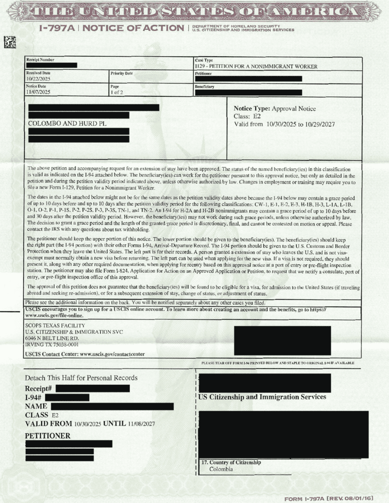 E-2 Status Approved for an Architect from Colombia