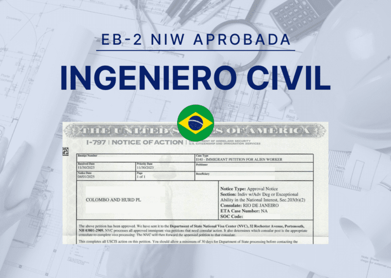 Este caso fue gestionado por el abogado senior Paul Messina de Colombo & Hurd, una firma estadounidense especializada en residencias permanentes basadas en empleo, incluyendo solicitudes EB-2 NIW y EB-1A. La firma ha conseguido más de 10.000 aprobaciones exitosas de visado y residencias permanentes para clientes de más de 100 países, incluyendo más de 2.500 aprobaciones en las categorías EB-2 NIW y EB-1A desde 2023.