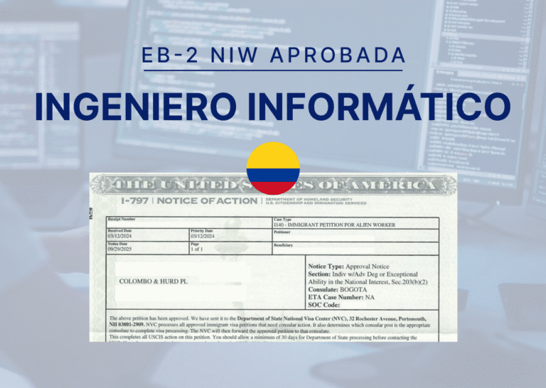 Caso de estudio EB-2 NIW: Aprobación para Ingeniero en Cloud Computing de Colombia Colombia Ingeniero informáticoLa arquitectura en la nube se ha convertido en una ventaja estratégica para las empresas de Estados Unidos. Los expertos que diseñan e implementan sistemas en la nube a gran escala desempeñan un papel clave en la innovación y el crecimiento económico. Este estudio de caso muestra cómo un arquitecto de nube colombiano, experto en transformación empresarial en la nube, superó la Solicitud de Evidencia (RFE) y obtuvo la aprobación del EB-2 por Interés Nacional (NIW). Gracias a su experiencia, ayuda a las empresas a mejorar la eficiencia, la escalabilidad y la seguridad de sus sistemas mediante estrategias avanzadas en la nube. Con la representación de las abogadas Vivian Daher y Kristal Sanchez, de Colombo & Hurd, demostró que sus aportes están alineados con las prioridades de Estados Unidos en modernización digital y seguridad cibernética. Como resultado, su solicitud EB-2 NIW fue aprobada, confirmando el impacto significativo de su trabajo en el avance tecnológico y económico del país. Visa EB-2 NIW Perfil del cliente Una carrera impulsada por la innovación en arquitectura de nube e infraestructura digitalEl cliente es ingeniero en computación y cuenta con casi una década de experiencia en arquitectura de nube e infraestructura digital. Con formación en tecnología empresarial, ha liderado proyectos complejos de transformación en la nube que ayudan a las empresas a operar de manera más eficiente en la economía digital actual. Su trabajo se centra en diseñar sistemas en la nube escalables que mejoran el rendimiento, reducen costos y fortalecen la seguridad de los datos. Ha ayudado a organizaciones a modernizar sistemas obsoletos, migrar a la nube y desarrollar estrategias tecnológicas a largo plazo. Gran parte de su impacto se ha dado en pequeñas y medianas empresas (PYMES), brindando a estas compañías en crecimiento acceso a capacidades avanzadas de la nube que normalmente usan las grandes corporaciones. Una de sus principales fortalezas es su capacidad para hacer que la tecnología compleja sea comprensible para líderes empresariales y tomadores de decisiones. Como señaló la abogada Kristal Sánchez: “La arquitectura en la nube puede ser muy técnica, pero mostramos cómo su trabajo impulsa el crecimiento y la innovación de las empresas. Una vez que quedó claro su impacto, el funcionario comprendió por qué es importante a nivel nacional”. El Desafío De la experiencia técnica al impacto real en el país Aunque el cliente tenía un historial sólido en arquitectura de nube, USCIS emitió un RFE que cuestionaba los tres criterios del EB-2 NIW: la importancia nacional de su trabajo, su capacidad para avanzar en el proyecto propuesto y si la exención del requisito de oferta laboral beneficiaría a Estados Unidos. USCIS necesitaba una explicación más clara sobre por qué su trabajo en modernización de la nube es importante para Estados Unidos y cómo impacta la economía, la innovación y la seguridad digital, más allá de las empresas con las que trabajó. El principal desafío consistió en traducir sus contribuciones altamente técnicas a términos que los oficiales de inmigración, que pueden no tener formación tecnológica, pudieran entender fácilmente. La respuesta debía mostrar cómo su trabajo se relaciona con prioridades nacionales, como la modernización digital y la competitividad económica. “La RFE nos obligó a simplificar el mensaje sin perder su contenido,” dijo la abogada Kristal Sánchez. “Nos centramos en resultados reales, mostrando cómo su trabajo ayuda a las PYMES de Estados Unidos a crecer y operar de manera segura, para demostrar por qué beneficia al interés nacional.” Comprueba si cumples con los requisitosSolicita tu evaluación gratuita EB-2 NIW hoy mismo. Evaluar Mi Perfil La Solución Un caso sólido y coherente gracias al trabajo en equipo La estrategia legal se basó en la claridad y la colaboración. El equipo que presentó la solicitud inicial y el que respondió al RFE trabajaron juntos de manera coordinada, afinando los argumentos y la narrativa para que USCIS entendiera con facilidad el impacto del cliente. Además, las abogadas colaboraron estrechamente con él para convertir ejemplos técnicos complejos en explicaciones sencillas y centradas en resultados, mostrando el valor real de su trabajo para la industria de Estados Unidos. “La colaboración entre los equipos, y con el cliente, nos permitió mantener el mensaje sólido y coherente a lo largo de todo el caso,” explicó la abogada Kristal Sánchez. La respuesta se centró en tres áreas principales de impacto. Primero, mostró cómo impulsa el crecimiento tecnológico con proyectos de modernización en la nube que mejoran la confiabilidad y el rendimiento de los sistemas en empresas en crecimiento. Segundo, destacó su liderazgo y colaboración, respaldados por cartas de recomendación que explican cómo guía a los equipos de ingeniería y fomenta la innovación en la adopción de la nube. Por último, resaltó la importancia económica de su trabajo, demostrando cómo ayuda a pequeñas y medianas empresas a reducir costos, reforzar la seguridad digital y mantenerse competitivas en un mercado global. “Resaltamos su impacto en las PYMES porque esa conexión con el crecimiento económico de Estados Unidos es importante,” agregó la abogada Sánchez. “No se trata solo de que trabaje en computación en la nube; está ayudando a las empresas estadounidenses a modernizarse y crecer.” Al alinear la evidencia con estos temas, las abogadas presentaron una solicitud persuasiva, coherente y fácil de seguir para el funcionario, sin recurrir a jerga técnica innecesaria. El Resultado Aprobación del EB-2 NIW tras la respuesta al RFE La solicitud fue aprobada tras una respuesta al RFE bien estructurada. USCIS reconoció la relev