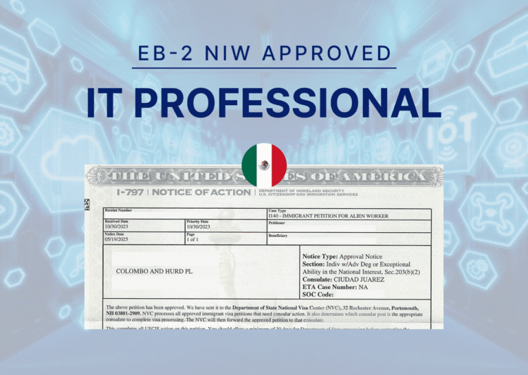EB-2 NIW Case Study: Cybersecurity Expert From Mexico Approval, No RFE Mexico Computer Science Professional | Cybersecurity SpecialistA Mexican computer science professional with a master’s degree in information technology secured an EB-2 National Interest Waiver (NIW) approval, demonstrating how his expertise in cybersecurity directly advances U.S. national security and public safety priorities. Represented by Senior Attorney Yadira Aguilar, our client successfully showed his work in protecting critical systems and sensitive data from cyber threats serves a clear national interest. His contributions to strengthening cybersecurity infrastructure across private businesses and government agencies align with federal goals to safeguard information systems and prevent unauthorized access to confidential data. In this case, immigration officials recognized the strength and national importance of his case from the outset, consequently granting a direct approval without issuing a request for additional evidence. Check Your EB-2 NIW Eligibility Client Background A Computer Science Professional with Advanced Training in CybersecurityOur client is a computer science professional with a master’s degree in information technology and years of experience working to protect critical systems from cyber threats. His academic training provided him with a strong foundation in software development, network architecture, and information security protocols, which he has applied throughout his career to safeguard sensitive data and prevent unauthorized system access. His expertise includes identifying vulnerabilities in complex systems, implementing security measures to prevent breaches, and responding to emerging threats in real time. What distinguished this case was the depth of evidence supporting the client’s expertise. We collected numerous pieces of documentation that established his achievements over the course of his career, including certificates from specialized training programs, recognition from industry peers and organizations, and detailed records of projects where his contributions directly enhanced security outcomes. Attorney Aguilar noted that this level of preparation was critical in building a compelling petition that immigration officers could evaluate without needing additional clarification. With his proposed endeavor in the United States, our client will advance cybersecurity practices that protect both private enterprises and public institutions. His work addresses a pressing national need, as cyber threats continue to evolve and target critical infrastructure, financial systems, healthcare networks, and government agencies. By showing that he successfully implemented similar projects in his home country, he established that he is well-positioned to contribute to long-term U.S. efforts. Our client will strengthen the country’s defenses against cyberattacks by safeguarding sensitive information across industries. The Challenge Collecting and Organizing Evidence to Support Every Strategic Argument The primary challenge in this case was ensuring that every element of the legal strategy was backed by verifiable evidence. In EB-2 NIW cases, it’s not enough to describe a professional’s qualifications or intentions. Claims must be supported by documentation that demonstrates past success and future impact. Attorney Aguilar explained that the key to building a compelling petition was collecting the necessary evidence to support each argument in the strategy. For petitioners in this visa category, it’s critical to show that they have been previously successful in similar projects or plans. This means gathering certificates, recognition from industry peers, detailed project records, and third-party validation that confirms the petitioner’s contributions have been impactful and measurable. We worked together with our client to assemble a comprehensive record that immigration officers could review and approve without requiring additional clarification. The Solution Connecting Academic Credentials and Past Contributions to U.S. National Interests Our legal team built a strong petition by connecting the client’s academic credentials, past contributions to the field, and previous successful projects to U.S. interests such as national security, public safety, cybersecurity, and economic growth. The strategy focused on demonstrating that his work in protecting digital systems and preventing unauthorized access serves clear federal priorities that extend beyond individual employers or projects. The petition highlighted how cybersecurity expertise benefits private businesses as well as government agencies and critical infrastructure. The case emphasized how the client’s proposed endeavor (to foster, promote, develop, and maintain adequate cybersecurity measures) would contribute to the safe development of digital information exchange and advance U.S. interests in Critical and Emerging Technologies. By framing his work within the context of national security and public safety, the legal team demonstrated that waiving the job offer requirement would allow the client to protect sensitive information across multiple sectors and support long-term efforts to defend against evolving cyber threats. The strength of the case rested on the comprehensive evidence provided by the client. With extensive certificates, professional recognition, and validation from third parties, the petition provided immigration officers with a clear and compelling record of the client’s past success and future impact. The Result EB-2 NIW Approval Without an RFE USCIS approved the client’s EB-2 NIW petition without issuing a Request for Evidence (RFE), a strong signal that the agency recognized the strength and national importance of the case from the outset. This direct approval reflects the quality of the evidence presented and the clarity of the legal arguments connecting his cybersecurity expertise to U.S. nati