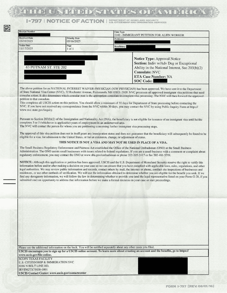 Caso de estudio EB-2 NIW: Aprobación para Médica Venezolana, Sin RFE Venezuela MédicaNuestra clienta, una médica venezolana, obtuvo la aprobación de EB-2 por Interés Nacional (NIW) sin recibir una Solicitud de Evidencia. Su carrera se ha enfocado en una de las amenazas más urgentes para la salud pública en Estados Unidos: la resistencia a los antibióticos. Este problema provoca millones de infecciones y decenas de miles de muertes cada año, bacterias, virus, hongos o parásitos dejan de responder a los medicamentos diseñados para eliminarlos. La neumonía refleja su impacto de forma directa: hoy, más del 40% de los casos están causados por cepas resistentes al menos a un antibiótico de uso común, y la resistencia sigue aumentando a medida que crece el consumo de antibióticos. Esta tendencia compromete los resultados clínicos. Casos que antes respondían al tratamiento estándar ahora exigen decisiones más complejas, antibióticos de amplio espectro y hospitalizaciones más largas, lo que incrementa el riesgo de complicaciones, la mortalidad y la carga sobre los hospitales. En este contexto, nuestra clienta recibió la aprobación de EB-2 NIW por sus aportes de relevancia nacional al manejo de la neumonía y al uso responsable de antibióticos. Sus protocolos, basados en evidencia científica, mejoran la precisión diagnóstica, reducen el uso innecesario de antibióticos y fortalecen los resultados en los pacientes, al tiempo que optimizan la eficiencia hospitalaria en Estados Unidos. Representada por la abogada Alexis Sein, de Colombo & Hurd, presentó un expediente que demostró con claridad la importancia nacional de sus contribuciones, dando lugar a un caso sólido y convincente que culminó con la aprobación. Check Your EB-2 NIW Eligibility Perfil del clienteFortalecimiento de la experiencia en el manejo de la neumonía y la gestión responsable de antibióticos Visa EB-2 NIWCasi quince años de trabajo clínico en hospitales de Venezuela y de Estados Unidos le brindaron a esta médica la experiencia y el conocimiento necesarios para obtener la aprobación de la EB-2 por Interés Nacional (NIW). Inició su formación en farmacia y luego completó el título de Médico Cirujano. Tras aprobar los exámenes de licencia exigidos en Estados Unidos, obtuvo la autorización para ejercer en un hospital del país y comenzó una exigente residencia en medicina interna, donde trató a diario casos complejos de neumonía. En ese rol, se centró en mejorar los resultados en pacientes con neumonía y en promover un uso más responsable de los antibióticos. Lideró una revisión integral de historias clínicas para analizar la calidad del alta, los reingresos y la mortalidad intrahospitalaria. A partir de ese análisis, contribuyó al diseño de herramientas de comunicación más claras, listas de verificación estructuradas para el alta y esquemas de seguimiento temprano orientados a reducir complicaciones evitables. Además, evaluó las prácticas del hospital en materia de pruebas diagnósticas para neumonía y las decisiones de tratamiento temprano. Junto con su equipo, ajustó flujos de trabajo y programas de capacitación para fortalecer el uso responsable de antibióticos en el manejo de la neumonía. Durante la pandemia de COVID-19, identificó que muchos pacientes hospitalizados que cumplían los criterios no estaban recibiendo el tratamiento antiviral indicado. Para abordar esta brecha, ayudó al hospital a ampliar el acceso a los medicamentos necesarios y a mejorar los sistemas de apoyo en los que se basan los clínicos para garantizar que los pacientes recibieran la terapia adecuada. Presentó estos hallazgos tanto dentro de su institución como en congresos y desarrolló colaboraciones centradas en el manejo de la neumonía y la resistencia a los antimicrobianos. Esta combinación de atención clínica en primera línea, proyectos basados en datos y desarrollo de protocolos fue un elemento central de su solicitud EB-2 NIW y de los argumentos de interés nacional presentados por Colombo & Hurd. El desafío Traducir un trabajo médico complejo en un caso sólido de interés nacional Desde el inicio, el equipo legal reconoció la importancia de traducir un trabajo médico altamente técnico en una presentación clara y convincente para un evaluador sin formación médica. La clienta se apoyaba en protocolos clínicos y de laboratorio especializados para el manejo de la neumonía y el uso de antibióticos. Por ello, la solicitud debía explicar, en un lenguaje accesible, cómo sus métodos mejoran la atención en los hospitales de Estados Unidos y se alinean con las prioridades nacionales de salud pública, sin perder el rigor científico propio de su especialidad. Como explicó la abogada Sein: “Teníamos que tomar un proyecto muy específico y técnico y convertirlo en una hoja de ruta que un funcionario sin formación médica pudiera seguir, comprender su lógica y entender por qué su trabajo es relevante tanto para los pacientes como para la salud pública en Estados Unidos”. Su historial migratorio añadió un nivel adicional de complejidad. Tras haber desarrollado su carrera en Estados Unidos, más recientemente bajo estatus H-1B, era fundamental diseñar una estrategia sólida y coherente de EB-2 por Interés Nacional (NIW) que respaldara sus objetivos a largo plazo. La solicitud debía demostrar con claridad que su trabajo impulsa objetivos federales, genera un valor medible en salud pública y justifica la exclusión de los requisitos habituales de oferta laboral y certificación laboral. Respuesta estratégica Una estrategia diseñada en torno a sus aportes médicos comprobados Para afrontar estos desafíos, el equipo estructuró la solicitud en torno al trabajo que la médica ya había desarrollado en su hospital en Estados Unidos. La abogada Sein y la clienta definieron con claridad sus principales proyectos, incluidos los protocolos para neumonía, el