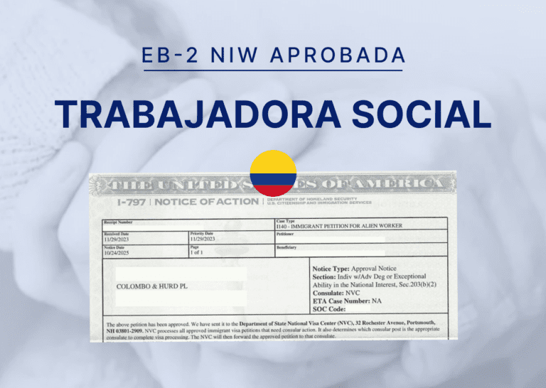 Caso de estudio EB-2 NIW: Aprobación para Trabajadora Social de Colombia Colombia Trabajadora social Nuestra clienta, una trabajadora social y psicóloga oriunda de Colombia, solicitó una EB-2 por Interés Nacional(NIW) para ampliar su trabajo, que se basa en brindarle apoyo a los y las sobrevivientes de violencia doméstica en los Estados Unidos. El abogado de Colombo & Hurd, Aaron Labreque, lideró la presentación inicial y el abogado Nizar Kafrouni elaboró una respuesta contundente cuando el Servicio de Ciudadanía e Inmigración de Estados Unidos (USCIS) emitió una Solicitud de Pruebas (RFE) impugnada. El trabajo coordinado entre los abogados condujo a la obtención de una aprobación exitosa de la EB-2 NIW, sentando las bases así para la misión de protección y apoyo de nuestra cliente a todos los sobrevivientes de violencia doméstica. Check Your EB-2 NIW Eligibility Perfil del clienteDos décadas de servicio social y sanación Visa EB-2 NIWDurante casi dos décadas, nuestra cliente ha dedicado su vida a ayudar a las personas que cargan con el peso del trauma. Su licenciatura y máster en Trabajo Social mejoraron su comprensión clínica y su enfoque respecto de la atención centrada en el ser humano. Su carrera avanzó a través de una serie de roles en trabajo social que la pusieron en contacto directo con las familias vulnerables. Facilitó talleres de prevención del abuso de sustancias, realizó visitas domiciliarias para evaluar la seguridad infantil y creó programas que fomentaron dinámicas familiares más saludables. También amplió su trabajo al ámbito académico como profesora de estudios étnicos, trabajando con estudiantes africanos, colombianos e indígenas. Su transición al sector legal marcó un punto de inflexión en su carrera. Como especialista en declaraciones de testigos, trabajó con inmigrantes indocumentados que habían sufrido abuso doméstico, trata y otras formas de violencia. Preparó declaraciones detalladas de testigos e informes psicológicos, y conectó a los supervivientes con el apoyo adecuado en salud mental. Más recientemente, trabajó como psicóloga bilingüe, preparando informes psicológicos completos para clientes que habían sobrevivido a abusos domésticos o el trabajo forzado. Su experiencia en trabajo social clínico y atención informada sobre trauma la posiciona para ampliar los servicios para sobrevivientes en los Estados Unidos, donde planea crear comunidades más seguras para las víctimas y dotar a los profesionales de las herramientas necesarias para reconocer, responder y prevenir el abuso. El desafío Organizar un historial profesional multifacético Este caso requirió una presentación reflexiva del amplio historial de la cliente y la documentación de apoyo. Su trabajo abarcó múltiples sectores, incluyendo servicios sociales, programas comunitarios, apoyo legal y atención informada sobre traumas, lo que significó que sus pruebas provenían de una amplia variedad de entornos disciplinarios. Organizar todo este material en una narrativa coherente que conectara claramente sus logros con su proyecto se convirtió en una tarea central. Respuesta estratégica Presentando un disco bien respaldado Nuestro equipo legal organizó la amplia trayectoria del cliente de manera que se alineara claramente con los requisitos EB-2 NIW. El abogado Kafrouni subrayó la importancia que implicaba la presentación de los documentos funcionando de forma coherente. Explicó que el plan de negocio y las cartas de interés se complementaban porque “ambos trabajan juntos”para mostrar cómo ella avanzaría en su proyecto. Además de cartas de colegas familiarizados con su trabajo, nuestro equipo incluyó una recomendación de expertos independientes. Señaló que “tales cartas tienen un peso probatorio ligeramente mayor” porque ofrecen validación desde una perspectiva neutral. El resultado Aprobación EB-2 NIW para un trabajador social La USCIS aprobó la solicitud EB-2 NIW del cliente. El abogado Kafrouni reflexionó sobre los materiales que fueron especialmente importantes para obtener la aprobación: “El plan de negocios demostró que el cliente tenía bien en claro lo que debía hacer en Estados Unidos, y las cartas de interés demostraban que este plan era necesario. Juntos demostraron su capacidad para avanzar en su proyecto propuesto.” También enfatizó el valor de incluir una carta de recomendación independiente que evalúe los logros de nuestra cliente desde un punto de vista objetivo. El abogado indicó que esta carta “alguien que no la conoce ni personal ni profesionalmente hablaba de los logros de ella, lo que le dio más peso probatorio y respaldó su historial de éxitos.” Comprueba si cumples con los requisitosSolicita tu evaluación gratuita EB-2 NIW hoy mismo. Evaluar Mi Perfil Por qué este caso tuvo éxito Un sólido historial de trabajo social y práctica clínica centrada en el trauma que demuestra que la cliente estaba bien posicionada para avanzar en su proyecto: su experiencia educativa y profesional creó una base sólida. Además, sus roles en trabajo social, educación, psicología, desarrollo comunitario y atención a la cliente informada por traumas demostraron un crecimiento constante, amplitud de habilidades y un historial probado de impacto. Los años de trabajo de nuestra clienta con inmigrantes indocumentados, supervivientes de trata y familias en riesgo: su experiencia con inmigrantes indocumentados, sobrevivientes de violencia doméstica, personas víctimas de trata, familias de bajos ingresos y jóvenes ilustró una vida de servicio alineada con su proyecto propuesto. La respuesta de RFE vinculó directamente su pasado a sus planes, reforzando que poseía el conocimiento y la formación para llevarlos a implementar. Apoyo sólido en testimonios, incluyendo evaluación independiente: Junto a cartas de colegas y supervisores, la solicitud incluía una carta de recomendación independie