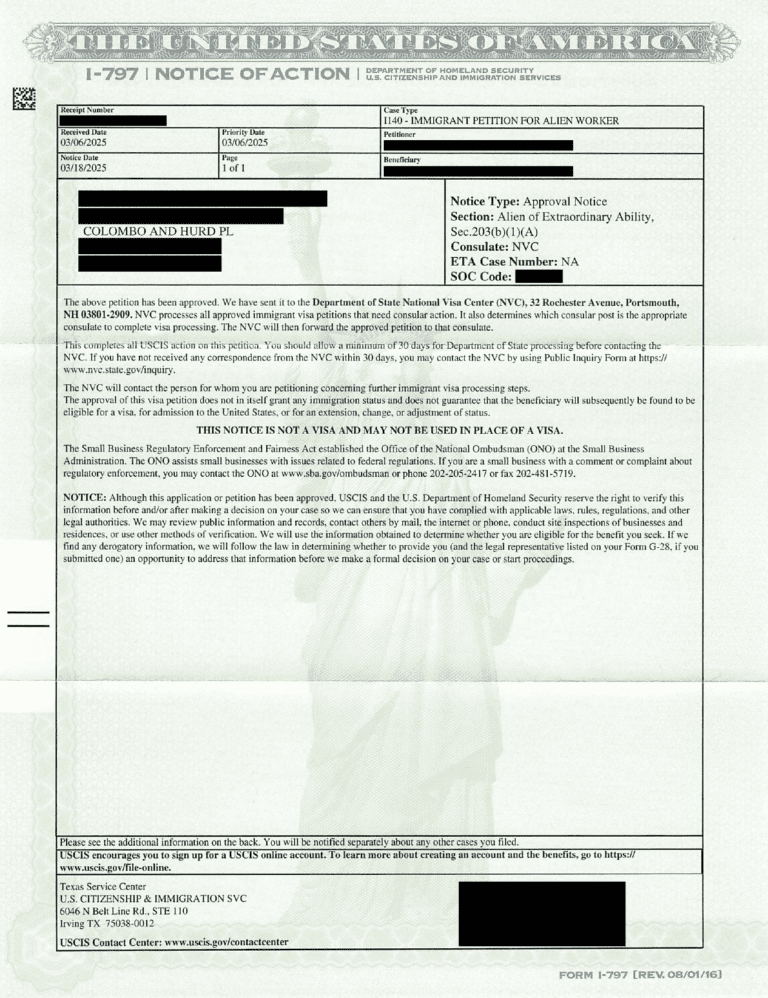 Estudo de caso EB-1A: aprovação para um cientista ambiental sudanês em 11 dias por meio do processamento premium Sudan EcólogoEcólogos aplicados desempenham um papel fundamental na geração de dados, estruturas analíticas e sistemas de monitoramento que orientam a gestão de terras, o planejamento de recursos naturais e a avaliação de ecossistemas a longo prazo. Nos Estados Unidos, os ecossistemas florestais sustentam setores estratégicos que vão da indústria madeireira e da agricultura ao planejamento de infraestrutura e à mitigação de desastres. Foi a partir desse cenário de alta complexidade que surgiu nosso cliente, um ecólogo florestal aplicado sudanês cujo trabalho pioneiro em conservação da biodiversidade e sustentabilidade ambiental lhe garantiu a aprovação do visto EB-1A (Extraordinary Ability – Primeira Preferência por Emprego) em apenas 11 dias, por meio do processamento premium. Com a orientação da advogada de imigração Allison McVey, do escritório Colombo & Hurd, a petição apresentou um histórico de impacto global e um argumento convincente sobre por que a continuidade de seu trabalho nos Estados Unidos é essencial para a resiliência das florestas e dos ecossistemas que delas dependem. CHECK YOUR EB-1A ELIGIBILITY Perfil do clienteUm cientista amplamente citado que está redefinindo a forma como os ecossistemas são medidos e protegidosComo um ecólogo aplicado de destaque oriundo do Sudão, nosso cliente construiu uma carreira de pesquisa global voltada à compreensão de como as mudanças ambientais transformam a biodiversidade e o funcionamento dos ecossistemas. Com formação acadêmica avançada, culminando em um doutorado em Conservação Ambiental, ele desenvolveu expertise em monitoramento ecológico, espécies indicadoras e análise de ecossistemas florestais de longo prazo. Seu trabalho abrange diversos continentes, incluindo pesquisas realizadas por meio de fellowships na América do Norte, Europa e África, onde investigou os impactos do clima, a degradação florestal, a dinâmica populacional de anfíbios e lacunas de dados sobre biodiversidade. Ele é autor de mais de 25 publicações revisadas por pares que documentam essas contribuições, incluindo um dos artigos sobre indicadores ecológicos mais influentes da última década, hoje amplamente citado nos campos da conservação, do monitoramento e das políticas ambientais. Além da pesquisa, ele ocupou cargos de liderança acadêmica e desempenhou um papel essencial na formação de novos ecólogos, especialmente durante períodos de instabilidade no Sudão. Seus programas de mentoria e iniciativas de divulgação científica capacitaram centenas de jovens pesquisadores com habilidades analíticas e de campo fundamentais, ampliando seu impacto muito além do laboratório. Seu perfil reflete distinção científica e uma influência internacional sustentada, consolidando-o como uma das vozes mais relevantes da ecologia aplicada e da ciência da conservação. O desafio Comprovar habilidade extraordinária em meio à urgência e à incerteza O desafio central foi fortalecer o caso por meio de recomendações de especialistas independentes que pudessem validar a influência do cliente no mais alto nível da área. A petição precisava demonstrar de forma clara que suas pesquisas moldaram a maneira como outros cientistas conduzem o monitoramento ecológico e interpretam dados ambientais. Somando-se a esse desafio probatório, havia um forte senso de urgência. O cliente enfrentava possíveis interrupções relacionadas à incerteza geopolítica envolvendo o Sudão e aos atrasos no sistema imigratório, tornando o fator tempo essencial. Cada componente do pedido precisou ser selecionado de forma estratégica, cuidadosamente documentado e apresentado de maneira que permitisse ao USCIS chegar a uma decisão clara sem atrasos. Resposta estratégica Uma abordagem de qualidade em vez de quantidade para as provas de habilidade extraordinária Nossa equipe jurídica optou por invocar apenas os critérios probatórios mais sólidos, aqueles que refletiam de forma mais clara o reconhecimento internacional sustentado do cliente e sua influência no mais alto nível da área. Como destacou a advogada McVey: “Desde o início, ficou claro que não se tratava de alegar todos os critérios possíveis, mas sim de alegar aqueles mais fortes. Em um caso EB-1A, a qualidade importa muito mais do que a quantidade.” Cada critério selecionado foi sustentado por um conjunto probatório diverso e estruturado em camadas. A autoria acadêmica foi contextualizada por meio do impacto de citações e da adoção em larga escala pelo campo. As contribuições originais foram apresentadas como pesquisas que redefiniram práticas de monitoramento ecológico em nível global. As funções de liderança e de papel essencial foram demonstradas por meio de cargos institucionais de longo prazo, atividades de mentoria e desenvolvimento de programas. De forma igualmente relevante, a petição destacou amplas responsabilidades de revisão por pares e editoriais, reforçando a autoridade do cliente para avaliar o trabalho de outros profissionais. As cartas de especialistas independentes desempenharam um papel fundamental no fortalecimento da narrativa. “Assim que os especialistas compreenderam o quão essencial a pesquisa dele era para o campo, o apoio surgiu naturalmente”, afirmou a advogada McVey. Ao estabelecer uma estratégia clara desde o início, a petição avançou de maneira fluida e sem atrasos desnecessários. Veja se você se qualificaFaça hoje mesmo sua avaliação gratuita de perfil para o visto EB-1A. AVALIAR MEU PERFIL O resultado Habilidade extraordinária reconhecida com aprovação em 11 dias por meio do processamento premium A petição EB-1A foi aprovada em 11 dias por meio do processamento premium. O United States Citizenship and Immigration Services (USCIS) reconheceu que o histórico