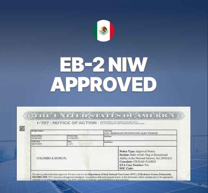 EB-2 NIW Case Study: Manufacturing Engineer & Energy Technology Expert From Mexico Approval Mexico Manufacturing EngineerColombo & Hurd Immigration Attorney Nizar Kafrouni shares a recent EB-2 NIW success story for one of his clients, a manufacturing engineer and energy technology expert from Mexico who ultimately secured approval in June of 2025, despite initial challenges from USCIS. EB-2 NIW Visa: Learn More Client ProfileOur client, a manufacturing engineer from Mexico, brought impressive credentials to his NIW petitionWith a master’s degree in manufacturing engineering technology from a U.S. university and the equivalent of a bachelor’s degree in mechatronics engineering from a prestigious Mexican institution, he had built a solid educational foundation in his field. His professional experience was equally compelling, spanning six years of progressive engineering roles. His career trajectory included positions as an assistant systems engineer trainee, engineer at a major automotive manufacturer, design process engineer, and most recently, plant engineer at a building products company. This diverse experience demonstrated his ability to apply engineering principles across multiple industries and contexts. The client’s proposed endeavor centered on enhancing the United States’ electric power system while promoting sustainable energy adoption through the design and implementation of cost-effective, innovative 3D-printed water turbines tailored for energy applications in small communities and rural areas. Mr. Kafrouni explains why this client stood out and how his background aligned with NIW requirements: “What made this client’s case compelling was the unique, innovative, and practical nature of his proposed endeavor: developing cost-effective, 3D-printed water turbines for alternative energy generation, specifically targeting underserved rural and small communities. His background in engineering and manufacturing technology positioned him to implement this initiative effectively, aligning with the National Interest Waiver (NIW) requirements. The project’s potential to enhance grid reliability, support energy independence, and promote sustainable power solutions are aligned with the U.S. interest.” The Approach Addressing RFE challenges systematically while building a compelling case for the client’s national importance and unique positioning The legal team developed a comprehensive response strategy that addressed each of USCIS’s concerns systematically while building a compelling case for the client’s national importance and unique positioning. Demonstrating National Importance The response provided a detailed description of the client’s proposed endeavor, emphasizing its alignment with current national priorities. The team highlighted how the work supported the Executive Branch’s declaration of a National Energy Emergency and aligned with key government initiatives including the Grid Modernization Initiative, Advanced Research on Integrated Energy Systems platform, and rural energy programs. Mr. Kafrouni explains how we aligned the client’s endeavor with current national energy policies: “The recent policy directions under the current Administration, as reflected in the White House publications, strongly support the relevance and national importance of the proposed endeavor. The administration is actively working to eliminate excessive barriers that obstruct energy infrastructure projects, reaffirming federal authority to streamline permitting and support energy development across the country. This policy directly complements the client’s initiative, which leverages existing infrastructure to implement localized, low-impact energy generation without the regulatory burdens typically associated with large-scale facilities.” Through a business plan, the economic impact was quantified through projections showing the client’s company would employ at least 11 personnel by Year 5, with tax revenue growing significantly from Year 1 to Year 5. This economic benefit was particularly significant as it would occur in an area comprised of U.S. Opportunity Zones. The team also secured an independent recommendation letter from a professional in the field and a recommendation letter from an economist, attesting to the national and economic benefits of the client’s proposed endeavor and its importance to the energy sector. Addressing the Third Prong The response argued that the client’s dynamic role in advancing energy technology through his unique expertise made the labor certification process impractical. The team demonstrated that his specialized skill set—combining engineering, manufacturing technology, and innovative 3D printing applications for alternative energy systems—was not easily adaptable to the standard labor certification process. “Our RFE response strategy was multi-faceted,” explains Mr. Kafrouni. “We focused on several key areas that demonstrated the true scope and impact of the client’s work.” These areas include: Client’s Achievements Summarizing key accomplishments to show contributions are valuable to the U.S., even if qualified U.S. workers are available, while emphasizing the client’s unique skill and innovative work. Reiterating that the client’s contributions significantly benefit the U.S., regardless of available U.S. workers, while also highlighting the urgency and need of the client’s services. Plan and Economic Impact Showing potential for U.S. job creation. Demonstrating pricing structure will not adversely affect U.S. workers. Detailing how the project will contribute to the local and national economy Connecting the location to national economic development initiatives. Highlighting the entrepreneurial nature of the project, making a specific job offer impractical. Urgent Need and National Interest Showing that the endeavor is tied to a time-sensitive national initiative and explaining why the services are 