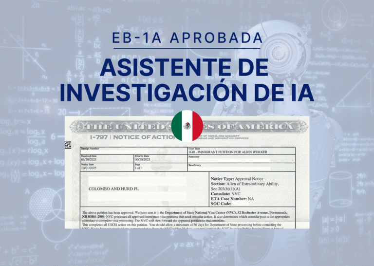 Caso de estudio EB-1A: Aprobación para Investigadora en Inteligencia Artificial de México en 3 Meses y 11 Días Mexico Investigadora en Inteligencia Artificial Una investigadora mexicana con amplia experiencia en Inteligencia Artificial (IA) y Ciencias de la Computación obtuvo la aprobación de la EB-1A por Habilidad Extraordinaria. Su caso fue aprobado en solo 3 meses y 11 días. Se trata de uno de los resultados más favorables dentro de una de las categorías migratorias más selectivas del sistema de inmigración de Estados Unidos. Los abogados de inmigración de Colombo & Hurd, Aaron Labreque y Jason Qiu, dirigieron el caso de principio a fin. Cuando USCIS (Servicio de Ciudadanía e Inmigración de EE. UU.) emitió una Solicitud de Evidencia (RFE), el abogado Qiu replanteó la respuesta para resaltar la influencia global de la clienta en la investigación y la enseñanza de la IA, lo que finalmente llevó a una aprobación rápida. Check your EB-1A Eligibility Here Perfil de la clientaUna académica que impulsa el desarrollo de sistemas inteligentes Con más de 23 años de experiencia en Ciencias de la Computación y en Inteligencia Artificial, nuestra clienta ha desarrollado su carrera en áreas como la optimización de algoritmos, las pruebas de software y el diseño de sistemas basados en IA. A través de este trabajo, ha contribuido al avance de la investigación y también a soluciones prácticas que se aplican en el mundo real. A lo largo de su carrera como investigadora en Inteligencia Artificial, ha obtenido dos maestrías y un doctorado en Ciencias de la Computación. Tras completar su doctorado, realizó investigación posdoctoral y ocupó cargos como profesora visitante en instituciones de primer nivel en Europa y América Latina. En estos puestos participó en proyectos que mejoraron el rendimiento y la confiabilidad de sistemas inteligentes, lo que le valió un amplio reconocimiento dentro de la comunidad académica y de investigación Investigadores de todo el mundo han citado sus publicaciones más de 200 veces, lo que demuestra el impacto de su trabajo en Inteligencia Artificial e ingeniería de software. En México, el Sistema Nacional de Investigadoras e Investigadores (SNI) la reconoció con su incorporación, una distinción reservada para profesionales que cumplen con los más altos estándares de excelencia científica. Antes de presentar su solicitud de residencia permanente EB-1A de habilidad extraordinaria, nuestra clienta ya trabajaba como profesora asistente de ciencias de la computación en una universidad de Estados Unidos. Desde ese puesto, participaba en proyectos de investigación y en la formación de nuevas generaciones de especialistas en su campo. El Desafío Cómo demostrar la habilidad extraordinaria en un campo altamente técnico Aunque los logros de nuestra clienta eran extensos y estaban bien documentados, USCIS emitió una RFE. En esta solicitud, la agencia cuestionó varios criterios de la categoría EB-1A, en particular los relacionados con la membresía en asociaciones distinguidas, las contribuciones originales de importancia mayor y la evidencia de alta remuneración. Como explicó el abogado de inmigración Jason Qiu, el problema no estaba en la solidez de sus credenciales, sino en la complejidad de presentar logros altamente técnicos de una forma clara y convincente para un oficial de USCIS. El equipo legal necesitaba demostrar con mayor precisión por qué su investigación era importante, cómo influía en el campo de la Inteligencia Artificial y de qué manera contribuía a un progreso medible más allá del entorno académico. Si bien USCIS reconoció su sólida trayectoria académica, la RFE señaló la necesidad de aportar pruebas más claras de cómo su trabajo se traducía en impacto real. Como resumió el abogado Qiu, la dificultad principal estaba en cerrar la brecha entre el contenido técnico y la percepción del oficial: “El problema no era la calidad de su trabajo, sino que la historia alrededor de sus logros necesitaba ser más clara. Nuestra tarea fue traducir un lenguaje altamente técnico a una narrativa comprensible que demostrara su habilidad extraordinaria.” La Solución De la evidencia técnica a una narrativa convincente para USCIS Cuando USCIS emitió la RFE, el abogado de inmigración Jason Qiu decidió responder con un enfoque muy claro y estructurado. El oficial detalló qué criterios de la categoría EB-1A ya se consideraban aprobados y cuáles necesitaban más respaldo, lo que dio al equipo legal una guía concreta para fortalecer los argumentos restantes. Dos criterios ya habían sido aceptados: evaluar el trabajo de otras personas y autoría de artículos académicos. A partir de ahí, nuestro equipo reforzó tres áreas adicionales: la membresía en asociaciones distinguidas, las contribuciones originales de importancia mayor y la evidencia de alta remuneración. “Nos dimos cuenta de que no se trataba de añadir más evidencia”, explicó el abogado Qiu. “Se trataba de ayudar al oficial a entender por qué su trabajo era importante.” Para respaldar el criterio de “membresía”, el abogado Qiu y su equipo presentaron pruebas de que la incorporación de nuestra clienta al Sistema Nacional de Investigadoras e Investigadores de México exigía una evaluación rigurosa por pares y reconocía un impacto medible en su campo. En cuanto al criterio de “contribuciones originales”, el equipo reorganizó la forma de presentar sus logros científicos y los respaldó con cartas de expertos más sólidas, que explicaban cómo sus algoritmos habían influido en colegas de todo el mundo y contribuido a mejorar las pruebas de sistemas de Inteligencia Artificial. Por último, para el criterio de “alta remuneración”, se reforzó la evidencia con datos salariales verificados y registros institucionales que situaban a la investigadora por encima de los rangos habituales para su puesto, confirmando