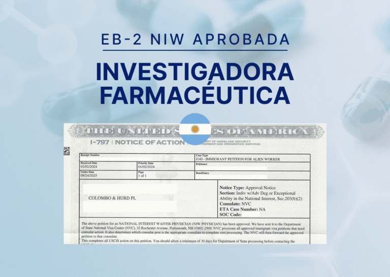 Caso de estudio EB-2 NIW: Aprobación para Científica Farmacéutica de Argentina Argentina Investigadora farmaceúticaCada año, miles de personas acuden a urgencias por reacciones adversas a los medicamentos. Por eso, cada vez más personas buscan alternativas seguras y naturales. Una científica argentina está respondiendo a esta necesidad al desarrollar suplementos vitamínicos de origen vegetal elaborados a partir de Momordica charantia L., una planta trepadora rica en nutrientes y con beneficios para la salud ampliamente documentados. La EB-2 por Interés Nacional (NIW) ofrece a innovadores como ella una vía única para entrar en Estados Unidos. En concreto, este proceso elimina el largo trámite de certificación laboral cuando su trabajo beneficia tanto a la salud pública como al interés nacional. En Colombo & Hurd, el abogado Salvatore Picataggio se encargó de presentar la solicitud inicial. Más adelante, el abogado Nizar Kafrouni acompañó con especial cuidado la respuesta a la solicitud de evidencia (RFE). Gracias a su trabajo conjunto, el equipo desarrolló una estrategia sólida que resolvió las observaciones de USCIS y logró la aprobación del caso. El 24 de septiembre de 2025, la aprobación de la solicitud marcó un paso importante para seguir impulsando la innovación destinada a mejorar la salud y reducir los costes de la atención médica. EB-2 NIW: Conozca más Perfil de clienteImpulsando soluciones naturales para una salud más segura Visa EB-2 NIWEn un laboratorio de Argentina, una científica farmacéutica dedicó años a estudiar una planta con un potencial extraordinario: Momordica charantia L. Esta enredadera trepadora, conocida localmente por sus usos medicinales, contiene vitaminas, minerales, antioxidantes y compuestos bioactivos. Sus beneficios incluyen la regulación del azúcar en sangre y efectos antiinflamatorios y antimicrobianos. La investigadora posee un título de profesora en Química, Física y Mereología, equivalente a un Doctorado en Farmacia en Estados Unidos. Su formación combina una sólida preparación académica con experiencia práctica en ciencias farmacéuticas y desarrollo de productos naturales. Durante más de una década, ha promovido la educación farmacéutica diseñando programas de laboratorio, tutorando a futuros farmacéuticos y publicando investigaciones sobre compuestos naturales como alternativas más seguras y eficaces a los medicamentos sintéticos. Su visión combina ambición y pragmatismo: desarrollar suplementos vitamínicos de origen vegetal que disminuyan los efectos secundarios de los productos sintéticos. Estos suplementos también fomentan la atención preventiva y ayudan a reducir los costes sanitarios asociados a las reacciones adversas a los medicamentos. El abogado Nizar Kafrouni afirmó que la formación académica y la investigación única de la científica la convertían en una candidata excelente. También señaló que los investigadores noveles con enfoques innovadores pueden lograr el éxito en el proceso EB-2 NIW, incluso cuando las métricas de citas tradicionales, como Google Scholar, son limitadas. Al vincular el trabajo de la clienta con las prioridades de salud pública de Estados Unidos, el equipo demostró de manera clara su valor para el interés nacional. El Desafío Cómo un proyecto innovador de suplementos naturales demostró su valor en Estados Unidos Afortunadamente, USCIS ya reconocía que la investigación de la clienta tenía un mérito sustancial y una importancia nacional. Sin embargo, después de la presentación inicial, USCIS emitió una Solicitud de Evidencias (RFE) para evaluar otros aspectos del marco del caso Dhanasar. Solicitud de evidencias (RFE) planteó dos preocupaciones principales. Primero, USCIS cuestionó si la científica contaba con los recursos y la posición adecuada para llevar adelante su proyecto en Estados Unidos(Prong 2). Segundo, evaluó si conceder la exención generaría beneficios suficientes para el interés nacional como para justificar eliminar el requisito de la oferta de trabajo. (Prong 3). “El funcionario cuestionó el impacto de la investigación y pidió evidencia clara de que el trabajo de la clienta representa un avance en el campo y aporta algo único”, confirmó el abogado Kafrouni. USCIS señaló que gran parte de la documentación presentada se centraba en las cualificaciones académicas y solicitó información adicional. La agencia pidió un plan más detallado y evidencia que demostrara la capacidad de la investigadora para avanzar de manera independiente en el trabajo propuesto. “En las solicitudes basadas en investigaciones, USCIS suele buscar indicadores de influencia cuantificables. Cuando esos indicadores son limitados, debemos demostrar el impacto de otras formas”, explicó el Sr. Kafrouni. En los casos de inmigración, un indicador común son las citas en Google Scholar que muestran con qué frecuencia otros investigadores hacen referencia al trabajo de un académico. Aunque un número alto de citas puede reflejar una amplia influencia, los investigadores en fase inicial pueden no tener muchas citas, incluso cuando sus contribuciones son importantes. En estos casos, resulta fundamental presentar evidencia alternativa que demuestre el valor real de su trabajo. La Solución Una estrategia personalizada de EB-2 NIW para un investigador en etapa inicial En respuesta a la Solicitud de Evidencia (RFE), el equipo legal del Sr. Kafrouni diseñó una estrategia personalizada que resolvía todas las cuestiones planteadas por USCIS. La respuesta destacó la originalidad de los métodos de investigación de la científica y su plan concreto para desarrollar suplementos naturales en Estados Unidos. Para reforzar el segundo punto, el equipo destacó la década de liderazgo de la científica en ciencias farmacéuticas, incluyendo la docencia, la tutoría y la investigación en farmacognosia y farmacotecnia. Un plan de negocio y