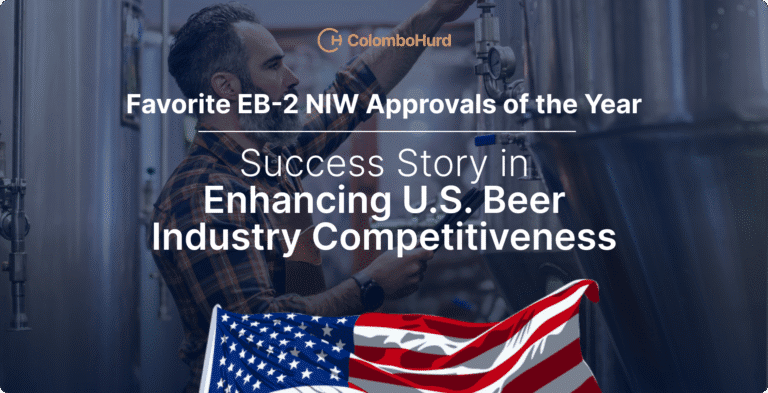 5 min readFavorite 2024 Approvals: NIW Success Story in Enhancing U.S. Beer Industry Competitiveness January 3, 2025Written By: Catie McHenry Favorite NIW Approvals of 2024! As 2025 begins, we’re proud to showcase a selection of our notable EB-2 National Interest Waiver (NIW) approvals from the past year. In our Favorite Approvals of 2024 series, we share inspiring stories of our clients’ achievements and our firm’s dedication to securing NIW approvals. This installment features Colombo & Hurd Immigration Attorney David A. Santiago, whose team successfully guided a Venezuelan client to NIW approval. The client’s innovative endeavor aims to revolutionize the brewing industry through optimized production processes, enhanced sustainability, and reduced environmental impact. Optimizing Brewery Efficiency and Sustainability: NIW Success Story in Enhancing U.S. Beer Industry Competitiveness Recently, the White House has voiced support for reducing waste and CO2 emissions, and for advancing technological processes. This NIW success story highlights our client, a mechanical engineer and brewmaster, who aims to revolutionize the brewing industry in line with these White House goals. In this case, our client from Venezuela proposed to assist small and medium-sized breweries in the U.S. by offering advanced solutions to enhance the efficiency of production processes, reduce costs, cut down on CO2 emissions, and fortify U.S. beer brands competitiveness. His holistic endeavor aims to spur economic growth, foster sustainable practices, and maintain the quality of U.S. beer brands. Our client has experience equivalent to a U.S. bachelor’s degree and over five years of experience as a Brewing Process Innovation Specialist. This expertise has empowered him to develop cutting-edge solutions for advancing the efficiency and sustainability of the brewing industry. “As a brewmaster, the client’s main focus was to make brewing processes more efficient and he also wanted to focus on making more sustainable processes for smaller breweries in the United States,” said Colombo & Hurd Immigration Attorney David A. Santiago. Mr. Santiago also commented on factors that made this client’s case one of his favorites of the year: “Aside from his unique approach and career, his focus on promoting optimization and sustainability practices for breweries and microbreweries made his profile and proposed endeavor really stand out.” To demonstrate the national importance and substantial merit of this client’s work, we emphasized the implications of his work for economic expansion, demonstrating that it drives growth and competitiveness in the U.S. beer industry. His work also promotes domestic job opportunities in designated Opportunity Zones in the United States. We also highlighted White House initiatives to reduce waste and CO2 emissions and to propel innovative technological progress. The client’s work aligns with these goals and thus has significant importance and merit. “We focused on time management and communication methods to ensure that we kept progressing the client’s case while also generating the best documents that we can. Thankfully, the legal team that was assigned the case focused on communication to obtain documents as efficiently as possible and we made sure that the client detailed his accomplishments in his field to show all of the benefits that he could provide to the United States,” Mr. Santiago explained, detailing his team’s strategy for best presenting this client’s case. Due to this focused strategy and the client’s impactful endeavor, Mr. Santiago and his team submitted a successful NIW petition. With his NIW approval, our client has unlocked new opportunities for career advancement and industry impact. Already, he has received interest from brewing companies for potential collaborations and partnerships. “The client is Venezuelan but due to the sociopolitical environment he and his family had to leave and move to Colombia for a better life. As an immigrant in Colombia with extensive and unpredictable work hours, he was not able to be as present as he wanted with his family,” Mr. Santiago commented on the life-changing results of this approval for the client. “Once he was approved, he thanked us and noted how we were extremely helpful but most importantly, we helped provide a better future for his children and his entire family. That made us, as the legal team, truly understand that we did not just help this specific client who was already an immigrant leaving Venezuela, but we helped an entire family better their lives and entire future, while also bettering the United States.” Looking back on this case, Mr. Santiago noted the key elements for success: “The details and accomplishments that the client provided in how he already bettered various breweries and microbreweries through better processes really helped in showing that he was the ideal candidate to carry out his specific proposed endeavor. Also, the client was able to use his professional connections to gain interest from breweries in the U.S. to show interest in his proposed endeavor.” Our client’s exciting National Interest Waiver approval showcases our team’s expertise in highlighting exceptional talent. His innovative contributions to the U.S. brewing industry will propel economic growth, sustainability, and competitiveness, providing transformative solutions to breweries in the United States. Share
